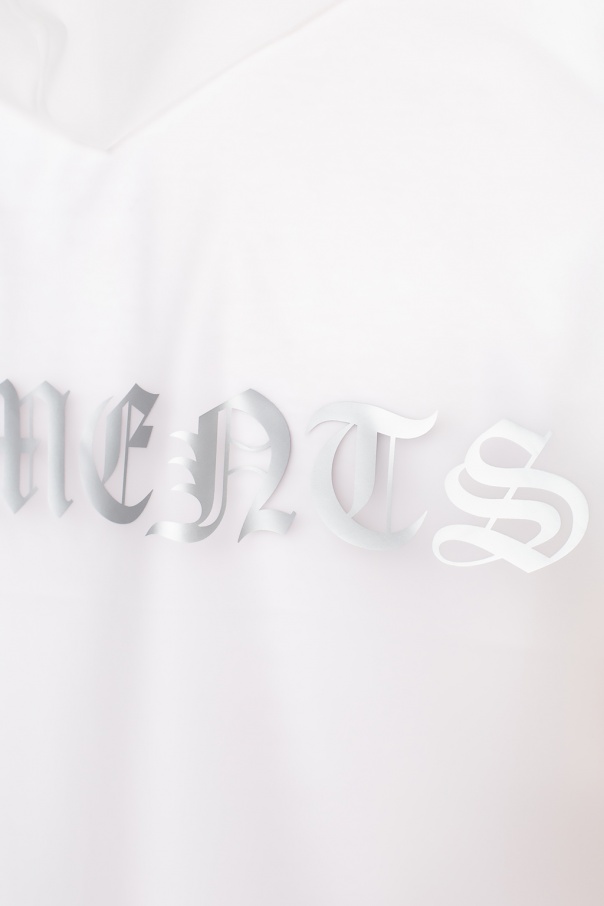 White coat from Vetements. This exclusive outerwear rendered in transparent polyurethane features snap fastening, hood with adjustable drawstrings, two slit pockets as well as silver-tone graphic print with logo on both front and back.