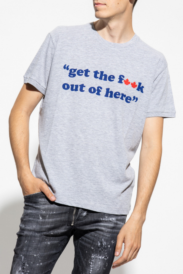 Grey T-shirt from Dsquared2. Made of cotton, this short sleeve design features a blue and red logo print and ribbed crew neck.