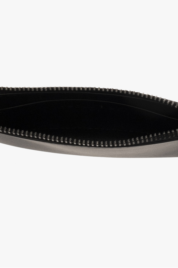 Black pouch from Dsquared2. Crafted from calf leather, this design fastens with a zip and showcases a logo application, a neck strap, dark silver-tone metal hardware and one internal compartment with a slip pocket.