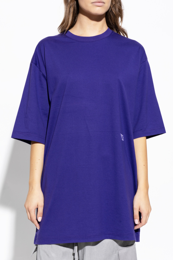 Indulge in the epitome of minimalist elegance with the T-shirt with Logo by Y-3 Yohji Yamamoto. This exclusive garment artfully marries the avant-garde aesthetics of the renowned Japanese designer Yohji Yamamoto with the dynamic ethos of the German sportswear brand Y-3. Crafted from high-quality cotton, this oversized T-shirt features a relaxed fit, short sleeves, and a classic round neckline, ensuring unparalleled comfort. The rich purple hue exudes sophistication, while the discreet \"Y-3\" logo, elegantly positioned on the left chest, adds a touch of understated luxury. Designed as a unisex piece, this T-shirt is a versatile addition to any wardrobe, seamlessly blending with various styles and occasions. Its simple yet iconic design is a testament to the brand\'s commitment to fusing high fashion with contemporary streetwear. Why Choose This Product? Luxurious high-quality cotton for maximum comfort Elegant and versatile unisex design Discreet and sophisticated \"Y-3\" logo Perfect fusion of avant-garde fashion and sporty chic Rich, regal purple color