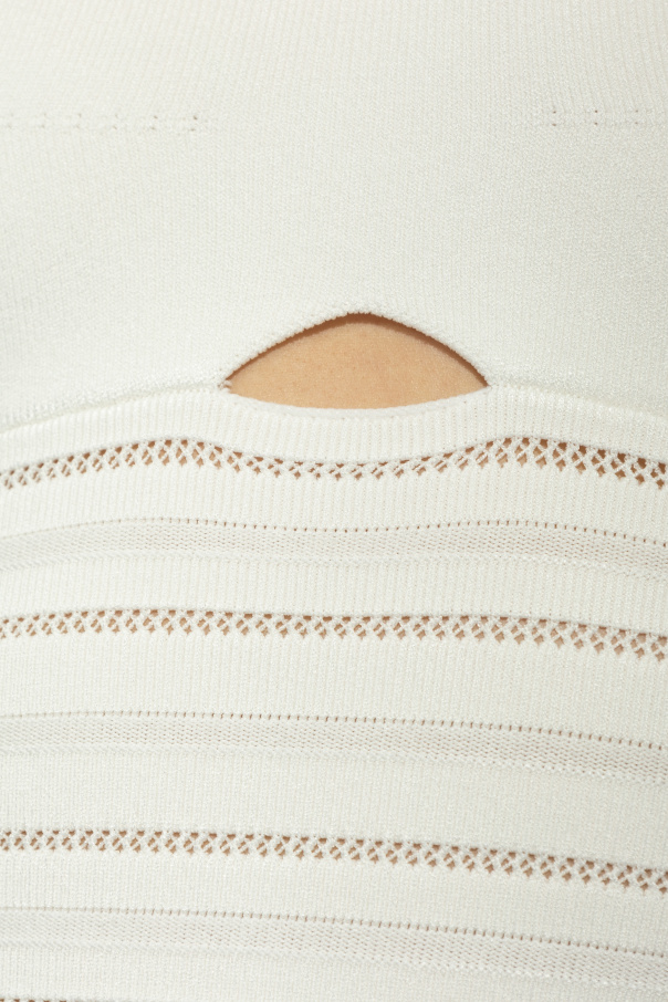 Introducing a breathtaking Strap Dress by Victoria Beckham, an epitome of minimalist elegance and contemporary design. Crafted with a meticulous blend of viscose, polyamide, and a hint of elastane, this dress promises not only a flattering fit but also supreme comfort and flexibility. The dominant pristine white color exudes a serene and sophisticated aura, while the slender straps and rounded neckline accentuate the collarbones and shoulders, adding a touch of grace. A subtle oval cut-out below the neckline injects a modern flair into the design, seamlessly blending with the dress\'s overall simplicity and elegance. The lower half of the dress is a testament to exquisite craftsmanship, featuring horizontal textures and airy, lace-like patterns that create an illusion of folds, enhancing the garment\'s texture and depth. The mid-length, flared hem that ends just behind the knees, combined with the asymmetric line at the bottom, introduces a dynamic element to the silhouette, making it both unique and timeless. Every detail, from the delicate lace patterns to the precise finishes, speaks volumes of the high-quality materials and craftsmanship employed, ensuring that this dress stands out as a piece of wearable art without the need for conspicuous branding. Why Purchase This Dress? Elegant Design: Perfect blend of modernity and minimalism. High-Quality Materials: Luxurious combination of viscose, polyamide, and elastane. Attention to Detail: Exquisite lace patterns and precise finishes. Versatile Wear: Suitable for various occasions, from day events to elegant evenings.