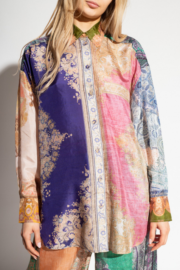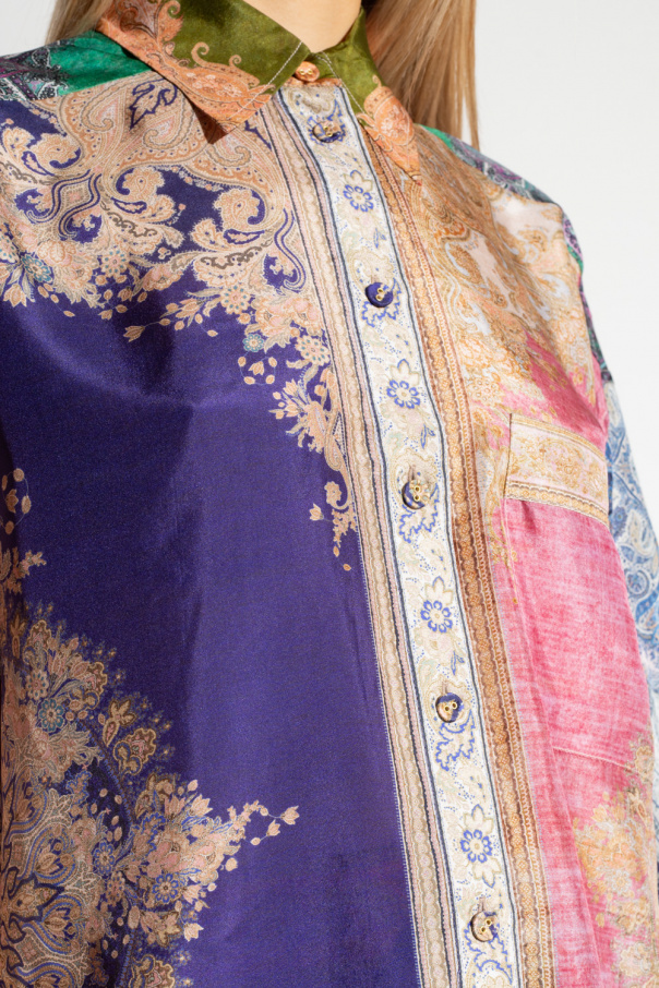 Multicolored ’Anneke’ patterned dress from Zimmermann. Made of silk, this loose-fitting pair features the Patch Paisley pattern, two front pockets and long sleeves with button cuffs.