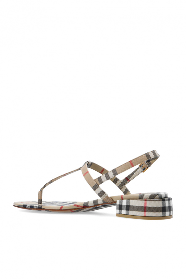 Beige Burberry sandals. Partially made of renewable materials. Fastened around the ankle with an adjustable strap with a buckle. Decorated with the brand\'s \'Vintage\' checkered pattern. Beige, rubber sole with a \'Vintage\' checkered pattern.