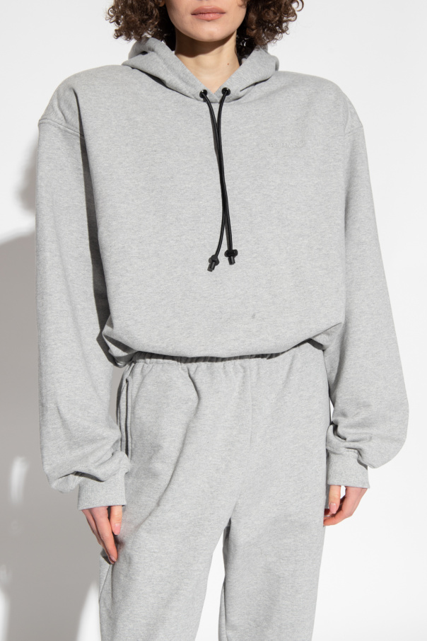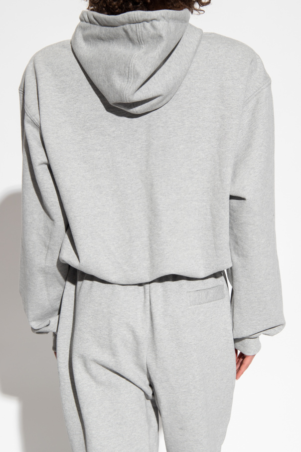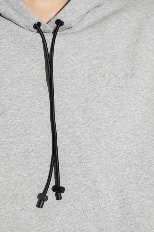 Grey ‘Garde’ sweatshirt with a drawcord-adjustable hood from The Mannei. Crafted from cotton jersey with a relaxed, cropped fit, this style features an embroidered logo on the front, padded shoulders and long sleeves with elasticated cuffs.