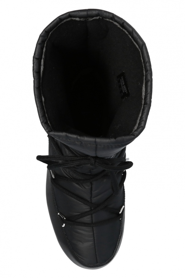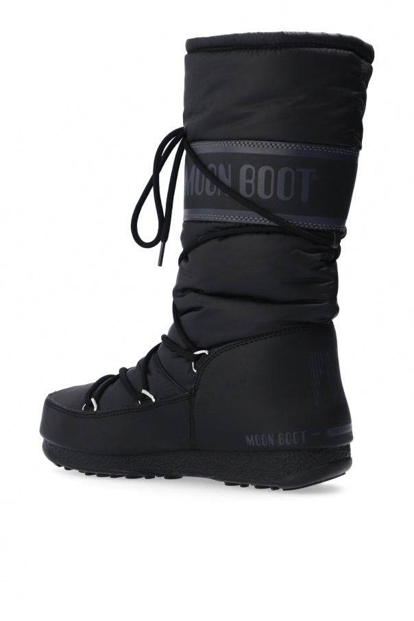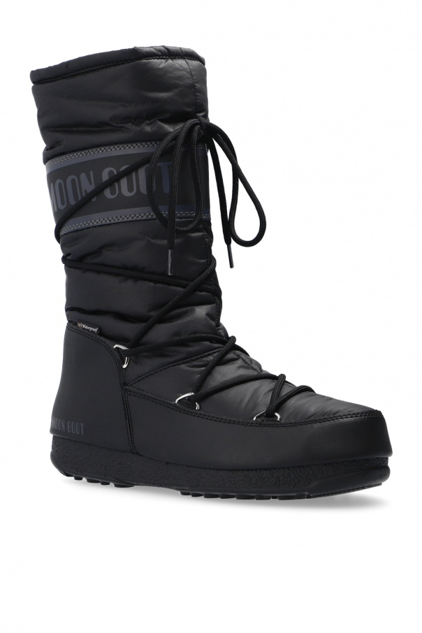 Black ‘High’ snow boots from Moon Boot. Printed with the label's logo, this lace-up pair is set on a black rubber sole and features eco-leather finish.