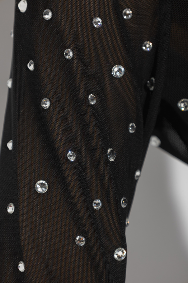Black ‘Felina’ bodysuit from Notes Du Nord. Crafted with a see-through finish, this style features glossy inserts, long sleeves and snap closures at the bottom.