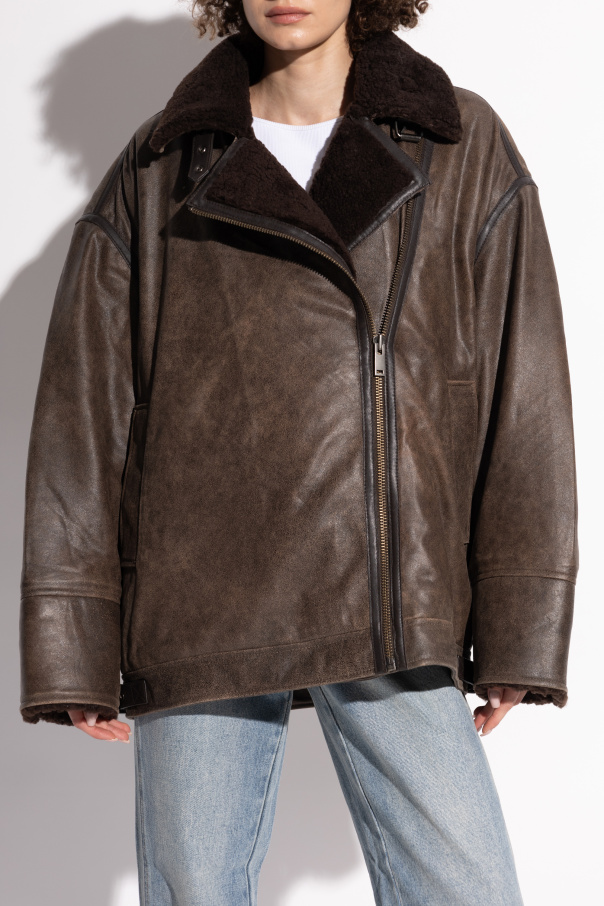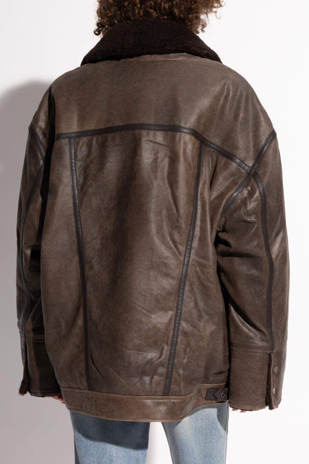 Introducing the Shearlygz Leather Jacket from the exclusive collection by the renowned designer, Gestuz. This masterpiece embodies a perfect blend of elegance and functionality, designed to offer a sophisticated yet relaxed look. Crafted from premium lamb leather in a rich brown hue with a subtly matte finish, this jacket is as luxurious as it is durable. The interior and collar are adorned with dark brown, soft fur, adding a touch of elegance and unparalleled comfort. The oversized cut, featuring wide sleeves and a straight hem, provides a contemporary and effortless style. A full-length metal zipper ensures ease of wear, while the generous collar, which can be secured high around the neck, offers additional warmth. Distinctive details include two large rectangular front pockets for practicality, characteristic stitching on the back to accentuate its structure, and adjustable straps on the sleeves and hem for a custom fit. Why Choose This Product? Exquisite lamb leather with a refined matte finish. Soft fur lining for added warmth and luxury. Oversized design for a modern and relaxed fit. Functional front pockets and adjustable straps. Exclusive design by the esteemed Gestuz.