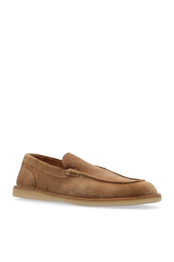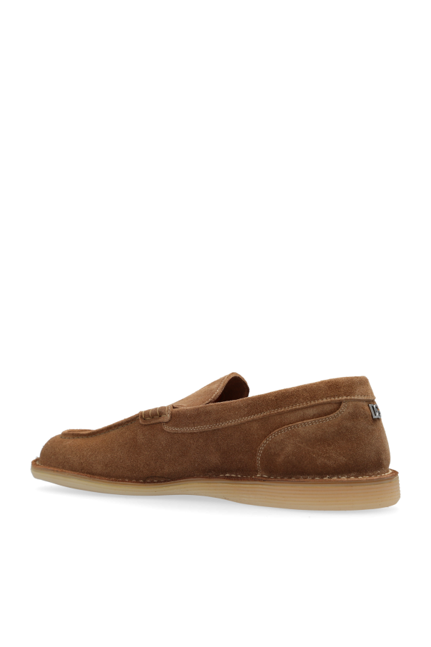 Introducing a masterpiece of minimalism and elegance, these Leather Moccasins by Dolce & Gabbana encapsulate the essence of sophisticated footwear. Crafted with an exquisite attention to detail, these moccasins boast a sleek, smooth suede exterior in a rich brown hue, seamlessly blending classic design with modern simplicity. The interior, lined in leather of a contrasting color, speaks volumes of the craftsmanship invested into each pair, ensuring not only style but also comfort and durability. The understated elegance of these shoes is further accentuated by the absence of embellishments, highlighting the luxurious quality of the materials used. A discrete designer logo adorns the side, serving as a subtle hallmark of luxury and authenticity. Resting on a flat, uniform rubber sole that mirrors the color of the upper, these shoes promise both stability and style. Their versatile design makes them an impeccable choice for an array of ensembles, from casual to formal attire, effortlessly elevating any outfit. Why Purchase This Product? Sophisticated, minimalist design that complements any wardrobe. Crafted from high-quality suede and leather, ensuring both luxury and longevity. Subtle designer logo as a testament to authentic craftsmanship and designer appeal. Contrasting interior lining, showcasing meticulous attention to detail. Perfect balance between comfort and elegance, suitable for various occasions.