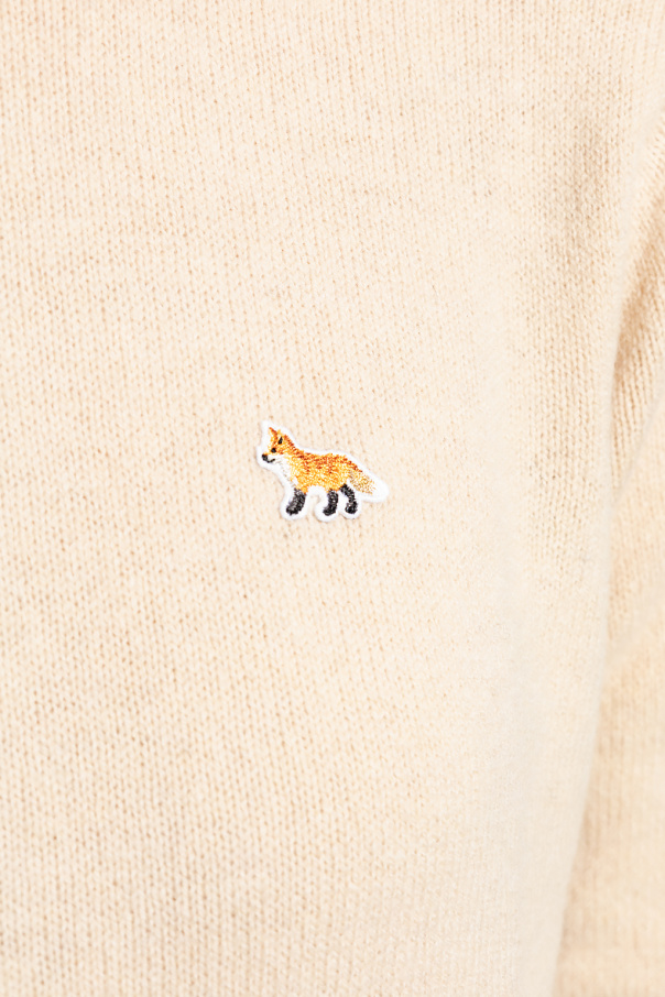 Light beige turtleneck sweater from Maison Kitsune. Crafted from wool, this design features a multicolored Baby Fox logo patch and ribbed trims.