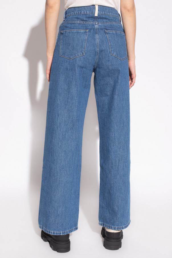 Blue ‘Magnolia’ jeans from Wandler. With a relaxed, boxy silhouette inspired by the 90s models, this pair features a zip fly with a button, classic five pockets, wide legs and the brand\'s signature white leather belt loop at the back.