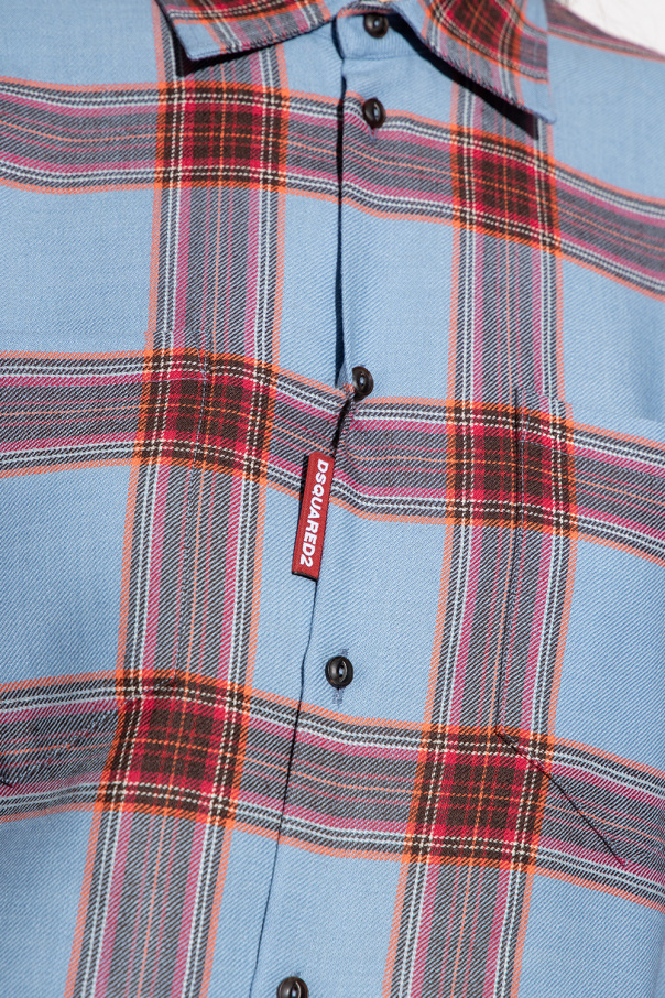 Blue shirt from Dsquared2. Crafted from a wool blend, this style showcases a check pattern, button fastenings, a logo patch on the front, two slip pockets and long sleeves with button cuffs.