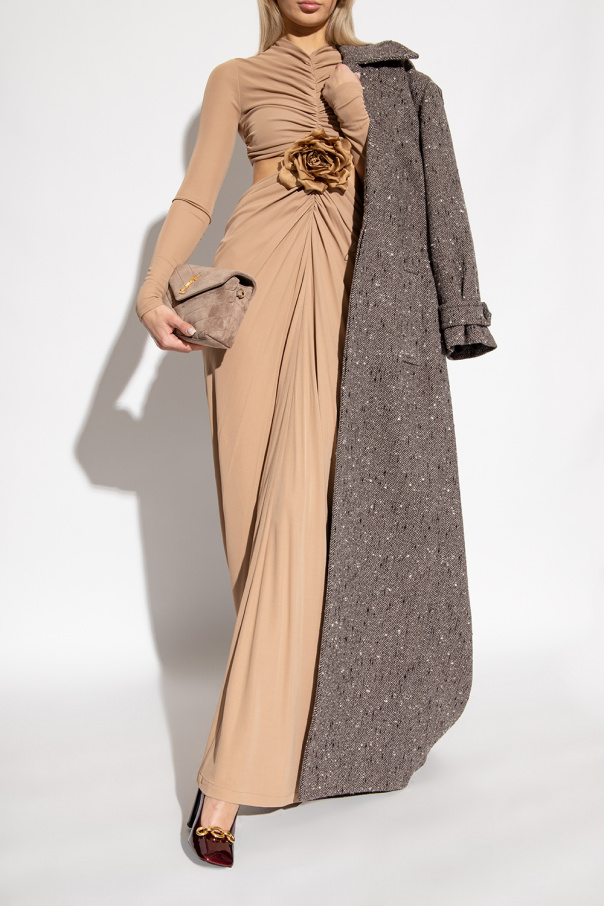 Maroon ‘Silvana’ pumps from Saint Laurent. Crafted from patent calf leather with a metallic effect, this model features a square toe, decorative gold-tone hardware detail on the front and a black leather sole at the base.