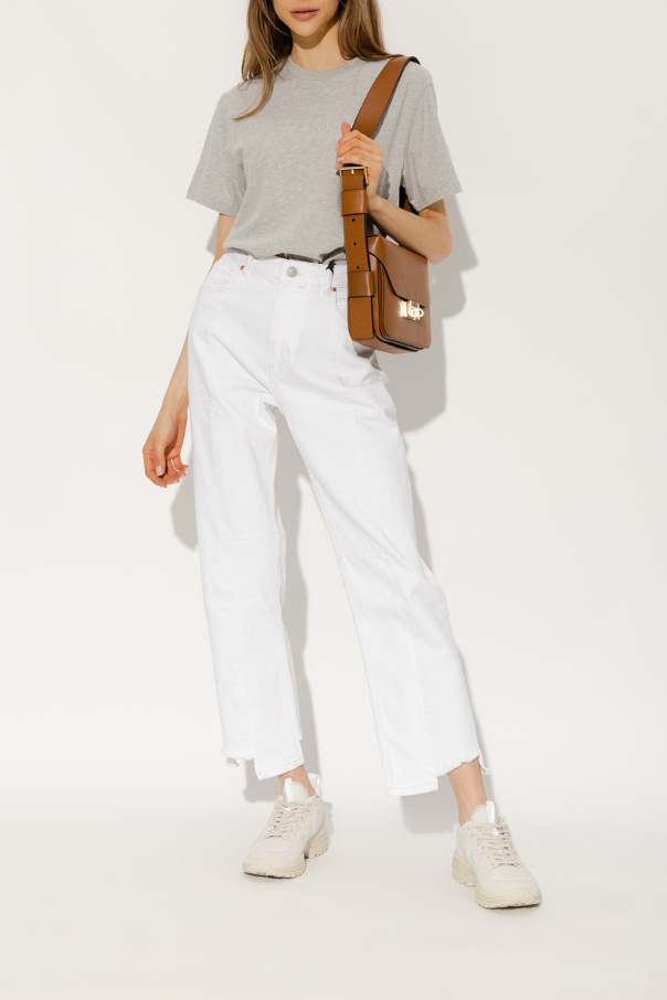 White and cream ‘Venturi Hexamesh’ sneakers from Veja. Crafted from durable Hexamesh with suede overlays, this lace-up model features a reflective strap on the tongue and the brand\'s signature white V patch. The organic-sourced and recycled insole is made from sugar cane, Amazon rubber, organic cotton and recycled polyester. It is set on a beige rubber sole equipped with latex L-Foam cushioned technology.