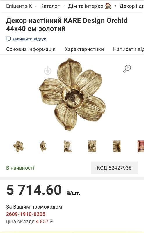 Декор настенный KARE Design Orchid 44x40 см золотой