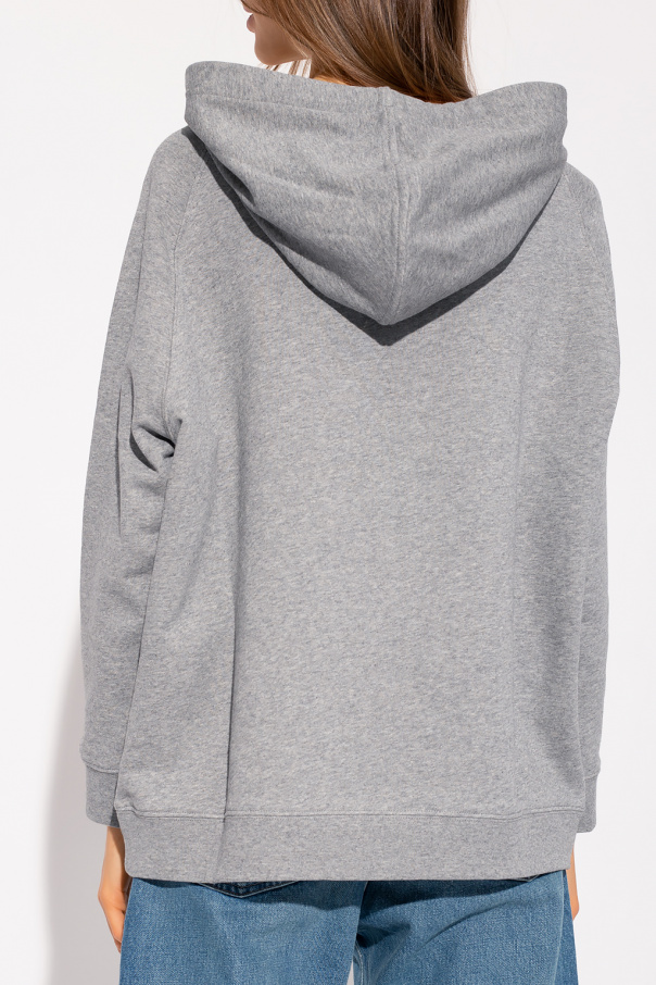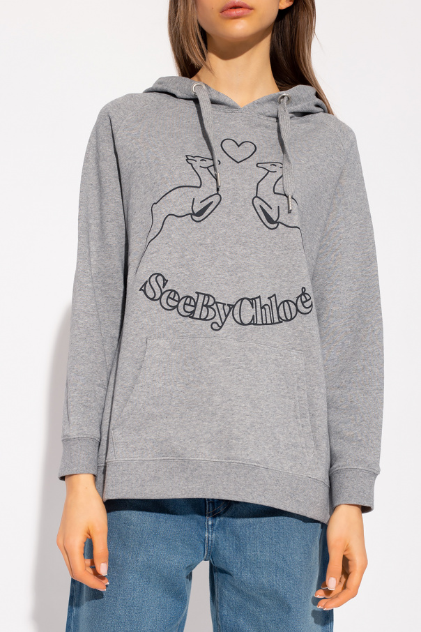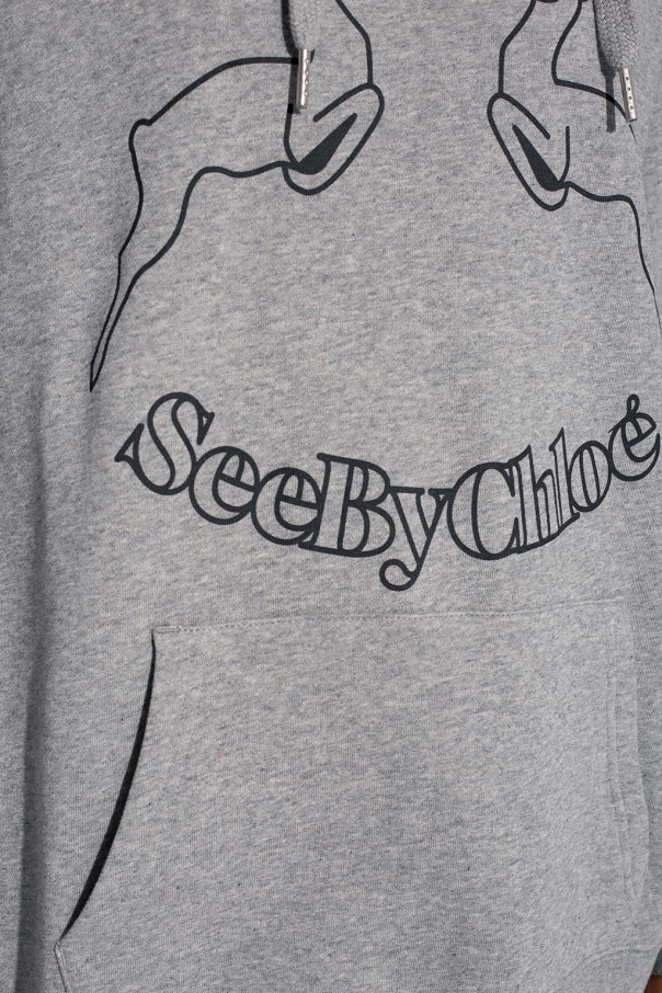 Grey sweatshirt with a drawcord-adjustable hood from See By Chloé. Made of cotton, this style features a black logo print, a kangaroo pocket and ribbed edges.