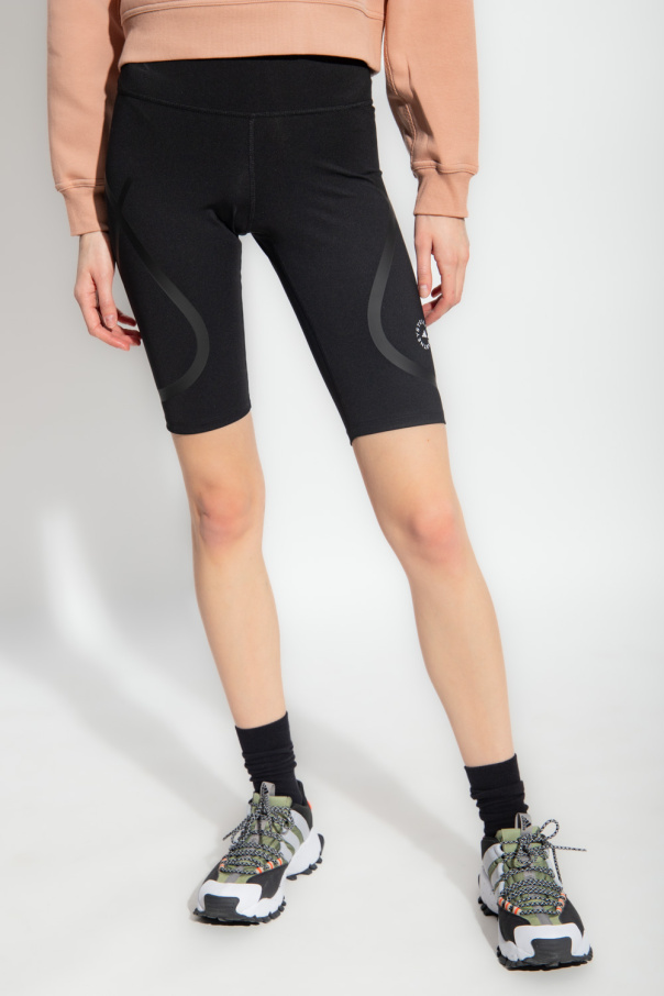 Black leggings from ADIDAS by Stella McCartney. Crafted in part from recycled material equipped with AEROREADY technology, this style features a drawstring waistband, a back zip pocket, logo detailing and reflective prints.