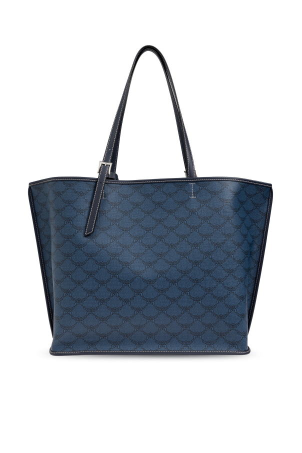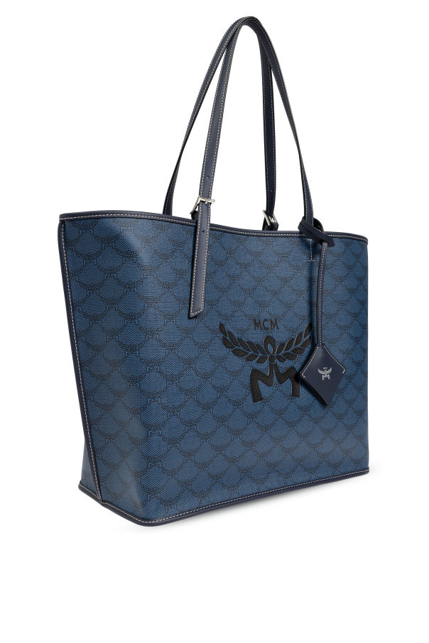 We present an exceptional shopper bag from the exclusive collection of the renowned designer MCM. This elegant bag, with a classic rectangular shape and a slightly flared top, impresses with its sophisticated design and practicality. Made from the highest quality leather, the bag is characterized by exceptional durability and aesthetics. The dominant blue color gives it a stylish and timeless look. The interior, lined with light-colored material with a smooth texture, ensures elegance and functionality. The bag is adorned with a repeating motif of the letters \"MCM\", creating a geometric pattern across its entire surface. On the front of the bag, there is a large \"MCM\" logo along with the characteristic wing motif, emphasizing its exclusivity. Long, thin handles allow for comfortable shoulder carrying, and a decorative rhombus-shaped charm with the \"MCM\" logo adds extra charm. The bag features a spacious compartment and an inner zippered pocket, making it perfect for everyday use and shopping. Solid handles and durable material make the bag not only elegant but also functional. Why should you buy this product? Elegant design and high-quality craftsmanship. Practical and spacious, ideal for everyday use. Exclusive character thanks to the visible MCM logo. Made from durable and luxurious materials.