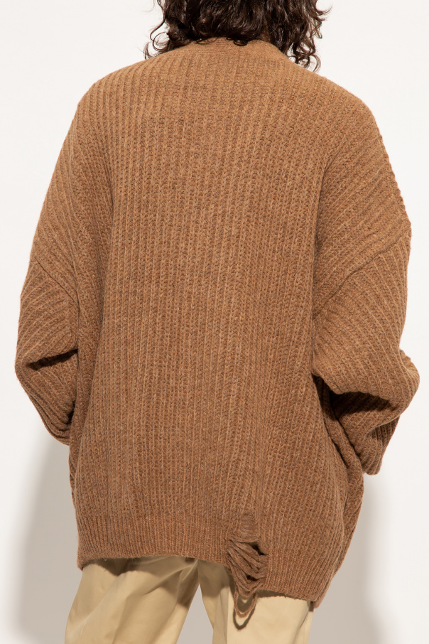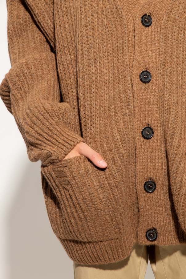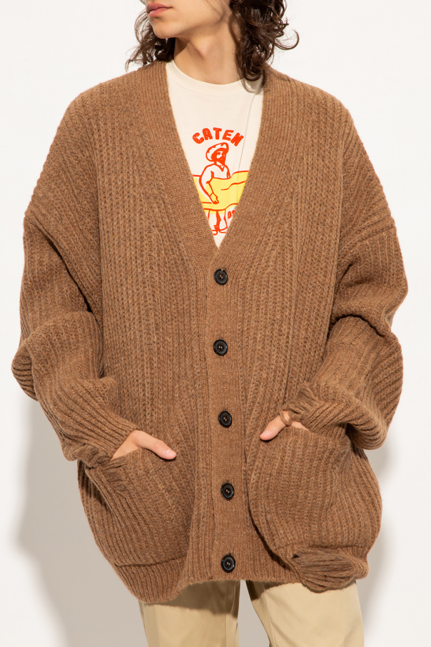 Brown loose-fitting cardigan from Dsquared2. Made of an alpaca and wool blend, this garment features button fastenings, two slip pockets, vintage effect and ribbed trims at the hem and cuffs.
