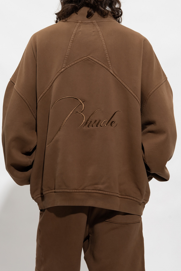 Brown sweatshirt from Rhude. Crafted from cotton with a relaxed fit, this style features a zip-up collar, an embroidered logo, two frontal pockets and an elasticated bottom hem and cuffs.