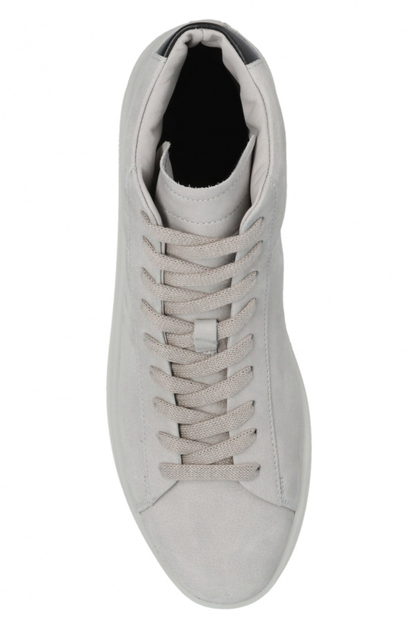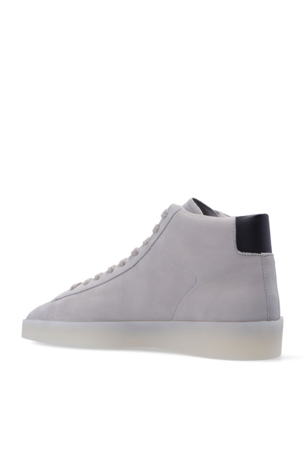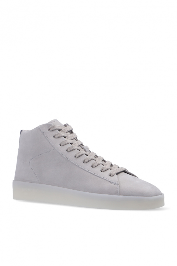 Grey ‘Tennis Mid’ high-top sneakers from Fear Of God Essentials. Made of nubuck, this lace-up model features a black smooth leather heel counter and a grey rubber sole accentuated with a tactile logo. Swappable shoelaces included.