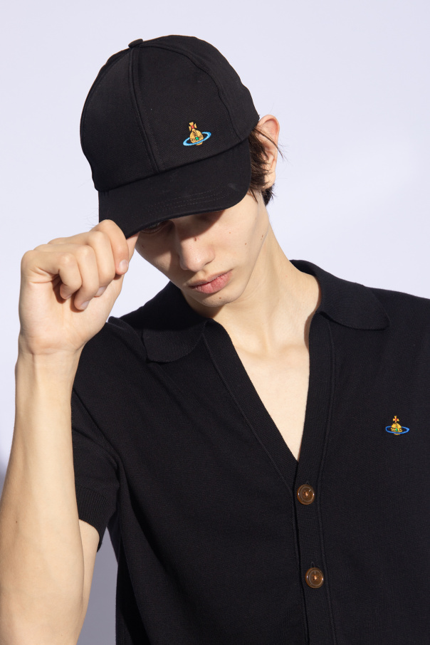 Introducing the epitome of sophistication and style: the Black Cap by the renowned Vivienne Westwood. This exquisite piece is a harmonious blend of traditional design and contemporary flair, designed for the discerning individual. Crafted from premium-quality fabric, the cap boasts a sleek, uniform texture that promises durability and comfort. Its classic, rounded silhouette is complemented by a distinctive, colorful embroidered motif on the front, set against a vivid blue backdrop—an emblematic feature that unmistakably represents the iconic brand. The cap\'s elegance is further enhanced by its meticulously distributed stitches and an adjustable strap at the back, finished with a metal buckle that adds a touch of luxury while offering a customizable fit. Whether presented alone or worn by models, this cap effortlessly showcases its versatile charm and superior craftsmanship. Why Choose This Product? Exclusive design by Vivienne Westwood, blending traditional aesthetics with modern sophistication. High-quality material ensures longevity and resistance to wear. Detailed, colorful embroidery serves as a striking, recognizable brand signature. Adjustable metal buckle provides both functionality and an elegant finish.