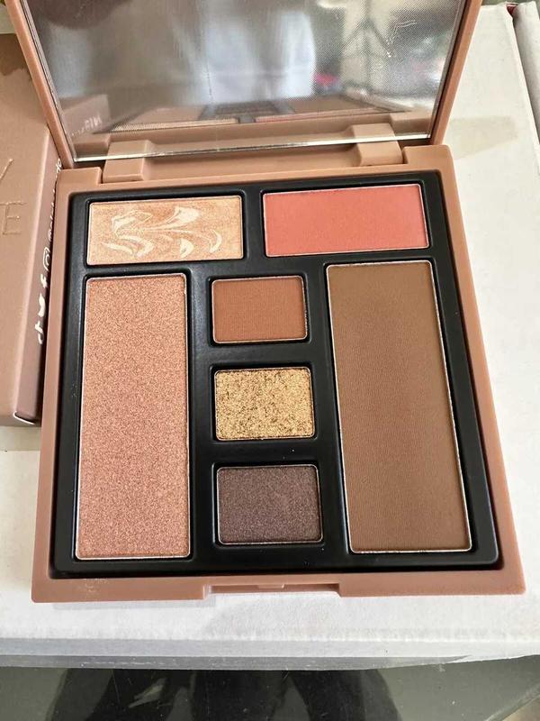 Назначение: В этой палетке «все в одном» есть все необходимое для создания красивого бронзового образа. От размывающей финишной пудры до придающего сияние бронзатора, от матовых румян до мерцающего хайлайтера и даже трех универсальных теней для век — это многозадачное чудо поможет вам днем и ночью.