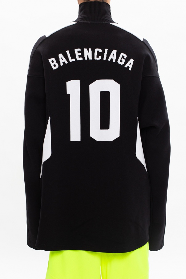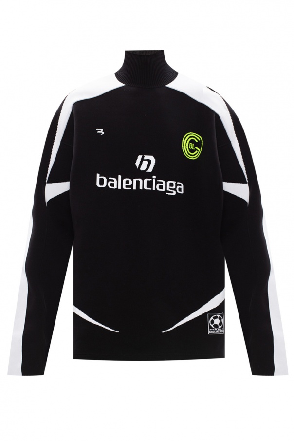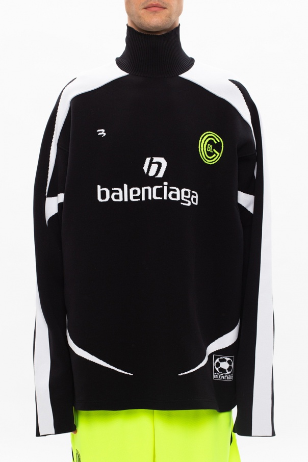 Black, white and green turtleneck sweater from Balenciaga. Spun from synthetic yarns, this style showcases logo of the brand on both front and back.