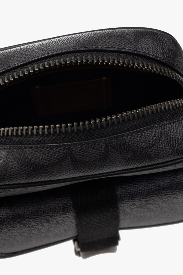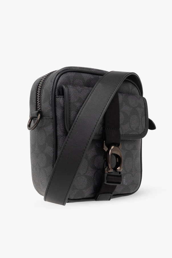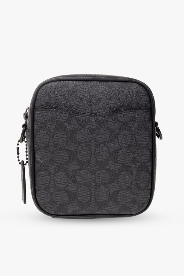 Black shoulder bag from Coach. Made of coated canvas, this design features a zip fastening, monogram pattern, front pocket with a strap and logo-shaped snap, back pocket, detachable and adjustable shoulder strap, dark silver-tone metal hardware and one internal compartment with one slip pocket.
