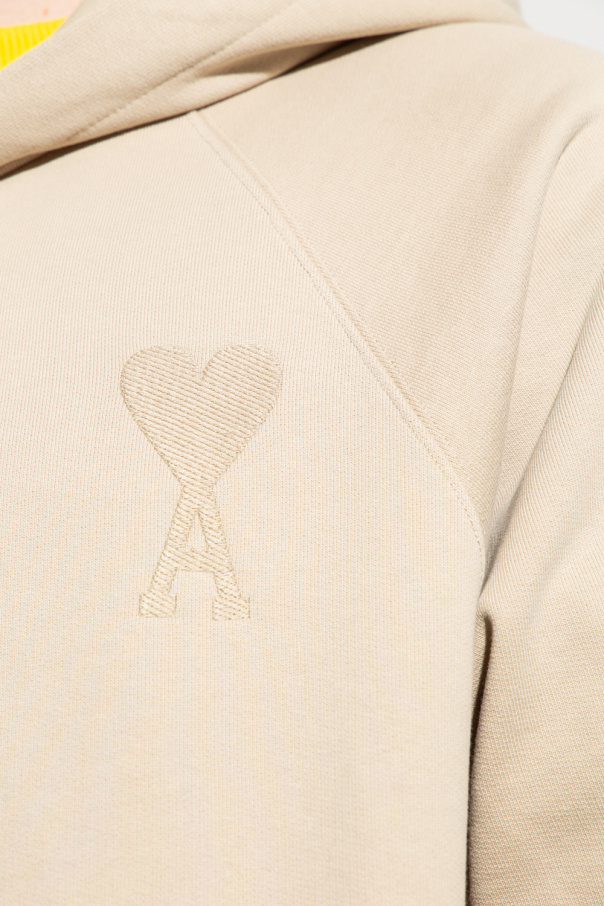 Beige hoodie from Ami Alexandre Mattiussi. Crafted in part from organic cotton, this garment features a zip fastening, Ami de Coeur embroidery on the front, drawstring hood, two slip pocket, long raglan sleeves and ribbed trims at the hem and cuffs.