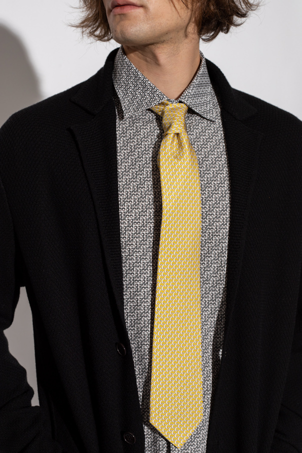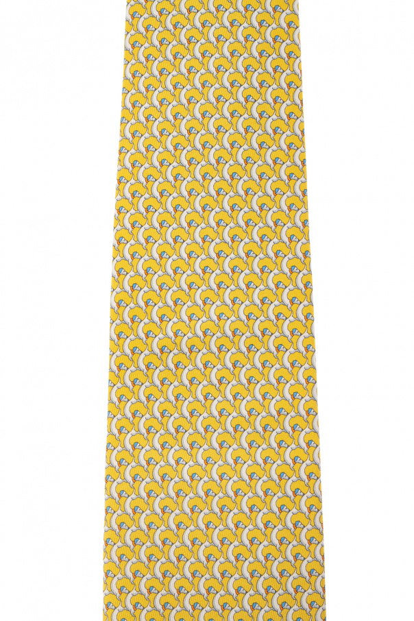Yellow tie from Salvatore Ferragamo. Made of silk, this item showcases a colourful animal motif.