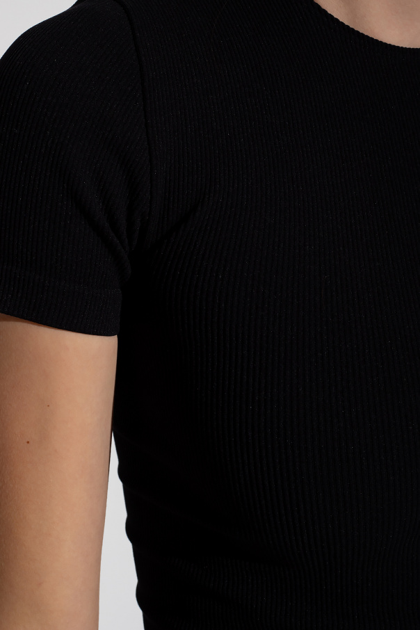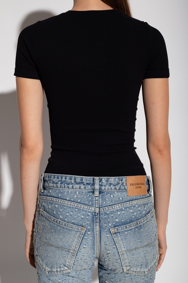 Black T-shirt from Balenciaga, the ‘Underwear’ collection. Crafted from a ribbed stretch blend, this style features a round neck and short sleeves.