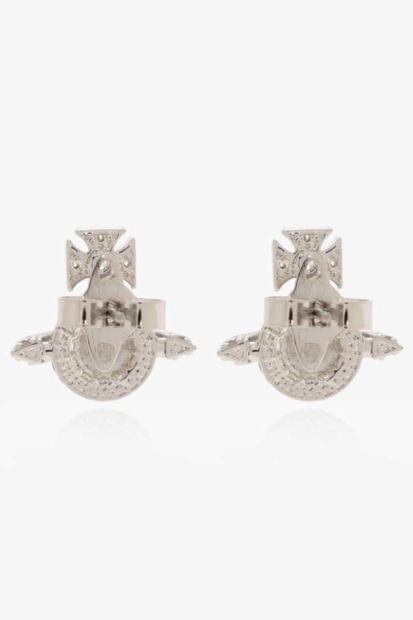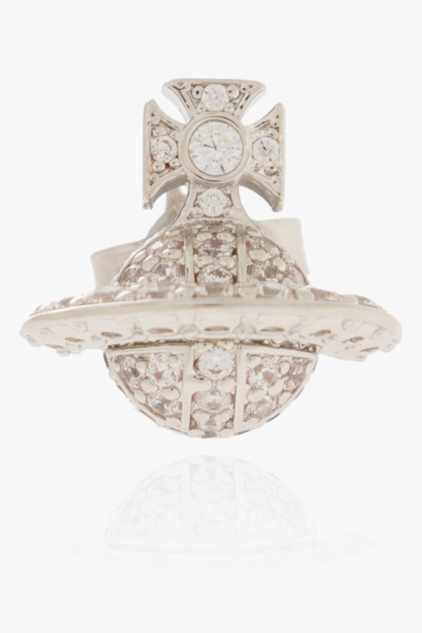 Silver-tone ‘Carmela’ earrings from Vivienne Westwood. Made of brass and bejewelled with crystals, they secure with push back closures.