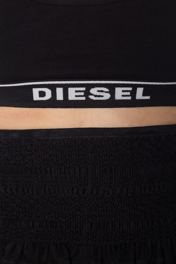 Black 'MILEY'sports bra from Diesel. Crafted from a stretch cotton blend, this item features a band with an embroidered white logo at the bottom.