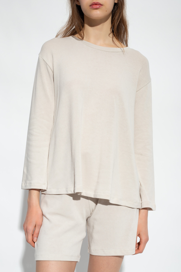 Cream ‘Summer’ sweater from Hanro. Knitted from cotton, this style features a ribbed crew neck and long sleeves.