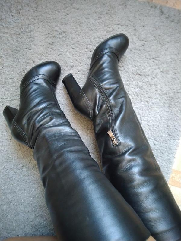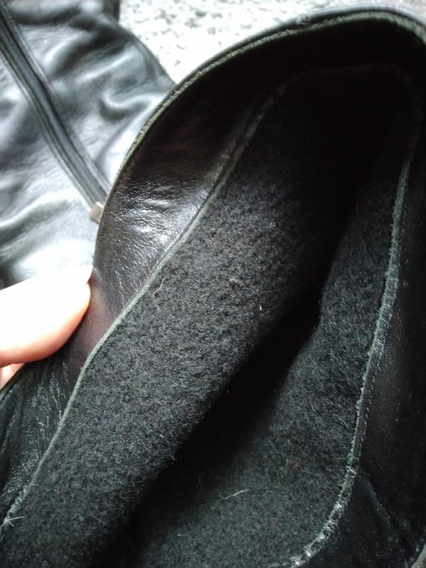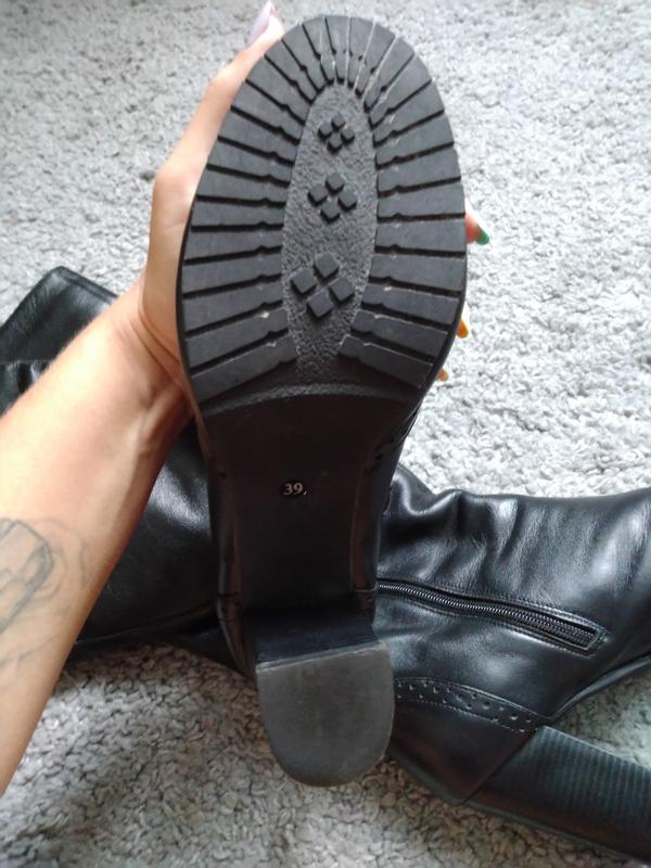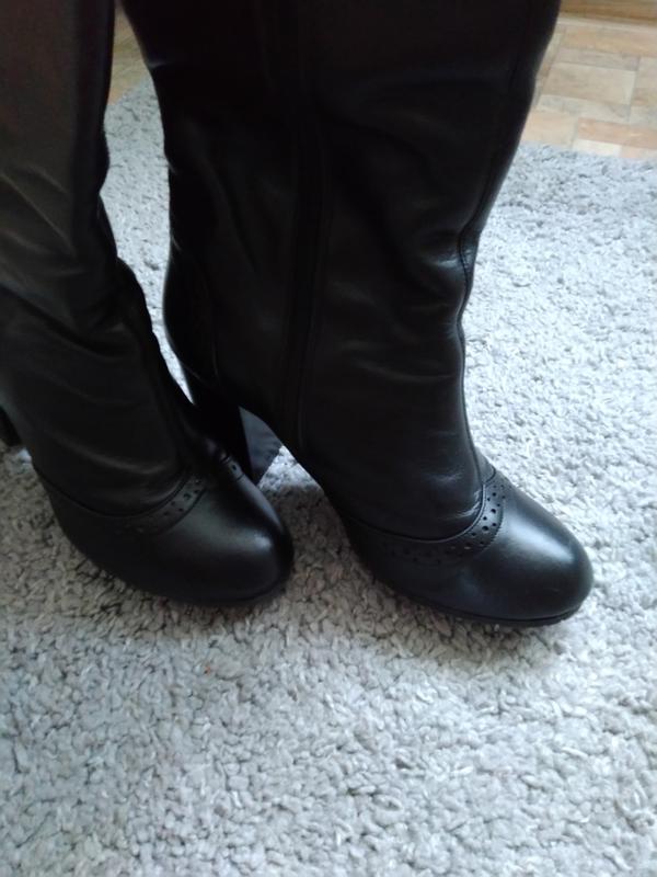 Очень классные кожаные сапоги утеплённые байкой. Удобный каблук и трендовый вырезной носок. Кожа суперского качества, плотная. Полиуретановые набойки.