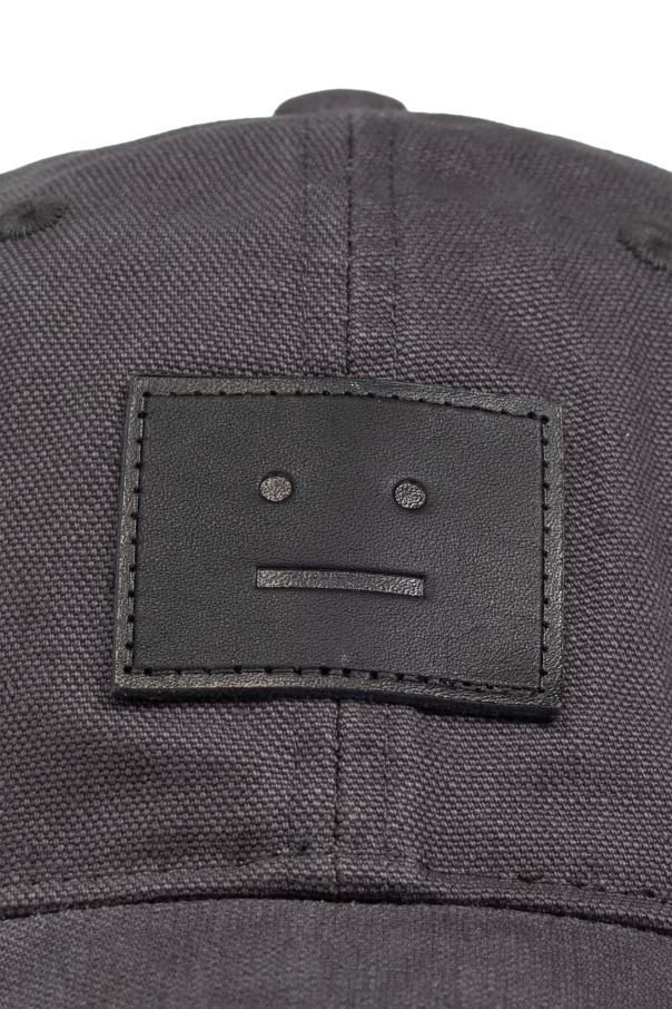 Presenting the Baseball Cap from the exclusive collection by Acne Studios, embodying the brand\'s philosophy of supreme quality and practical minimalism, intertwined with avant-garde design. This classic six-panel baseball cap boasts a rounded shape, constructed from premium quality cotton to ensure both comfort and durability. The cap\'s understated elegance is emphasized by its dark gray hue, free from additional patterns or vibrant accents. A prominent feature is the rectangular black patch on the front, adorned with a simple face logo, a distinguishable hallmark of the brand. The cap also includes an adjustable closure at the back, allowing for a customizable fit, and a small button on top, typical of this headwear style. Meticulous attention to detail is evident in the visible, carefully crafted stitches and the securely attached patch, underscoring the cap\'s high-quality finish. Why Choose This Product? Exclusive design by Acne Studios Premium quality 100% Cotton material Minimalist and elegant dark gray color Iconic and distinctive logo patch Adjustable fit for maximum comfort High-quality craftsmanship and finish