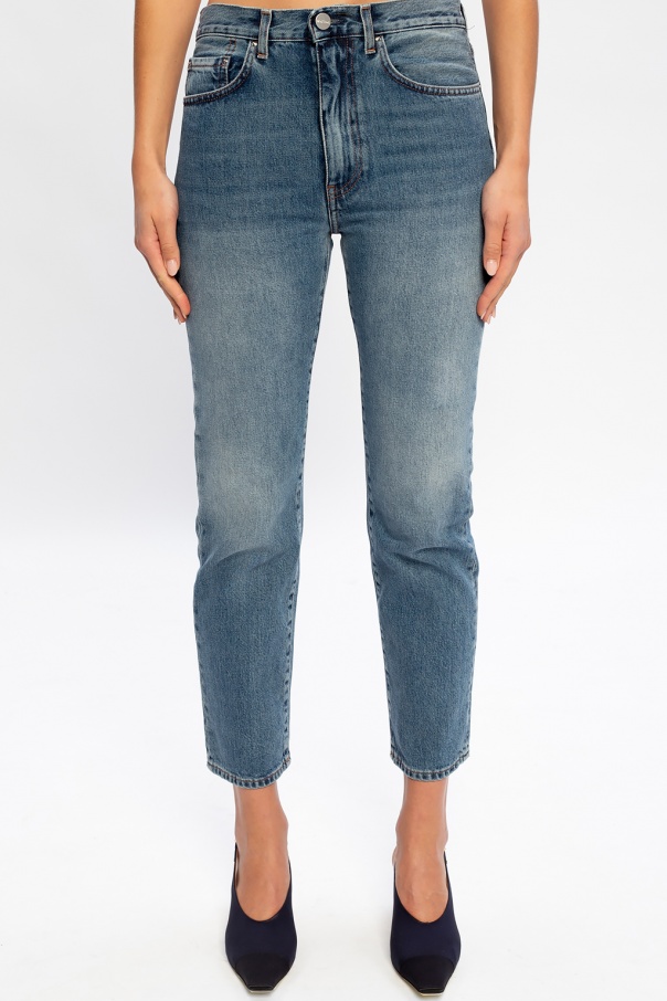 Blue jeans from Toteme. Featuring tapered design with legs that narrow towards the ankles, this pair is complete with zip fly, button closing and four pockets.