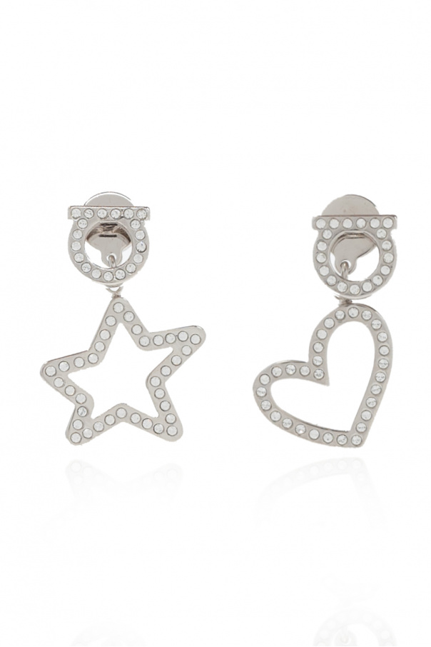 Silver-tone earrings from Salvatore Ferragamo. Made of brass, they feature stud fasteners, logo detailing, pendants and glass crystals.