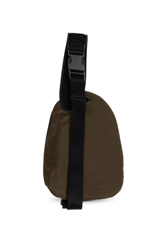 Introducing the exclusive waist bag from the esteemed fashion house of Bally. This accessory is a testament to the seamless blend of tradition and modernity, crafted for those who appreciate refined elegance and practicality. The bag boasts an oval, aerodynamic shape that is as stylish as it is functional. Made from high-quality ripstop material, it promises durability and resistance to wear. The subtle, solid pattern adds a touch of sophistication, making it a versatile addition to any wardrobe. Distinctive details set this piece apart: the front showcases a black designer logo patch, exuding exclusivity. A robust and easy-to-use zipper secures the outer pocket, while the wide, adjustable strap ensures comfort during wear. Inside, contrasting yellow accents not only enhance organization but also impart a modern flair. Available in a dark olive/brown hue, this waist bag is designed for men and fits seamlessly into the category of waist bags. The main compartment, secured by a zipper, guarantees the safety of your essentials, complemented by an internal slip pocket for additional organization. Why Choose This Product? Crafted by Bally, a pioneer in luxury goods since 1851. Constructed from premium materials: nylon, leather, polyester. Elegant, subtle design with an exclusive logo patch. Functional features including a secure zipper closure and adjustable strap. Interior with contrasting details for modern appeal and organization.