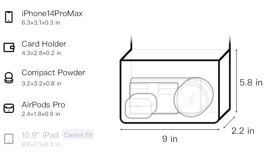 - Size:L9.0*W2.2*H5.8 in