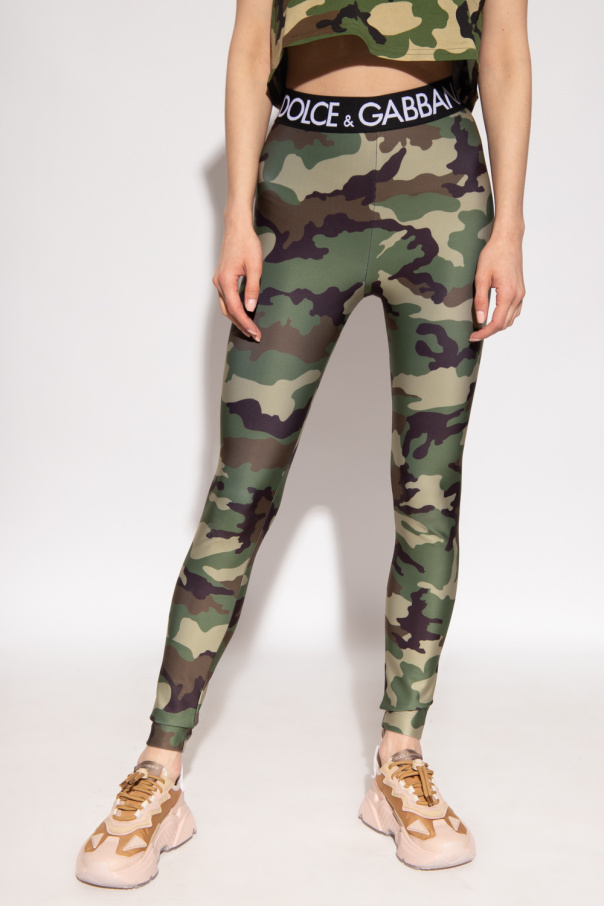 Green, brown and black leggings from Dolce & Gabbana. Decorated with a camo pattern, this pair features an elastic waistband with a logo in white and black.