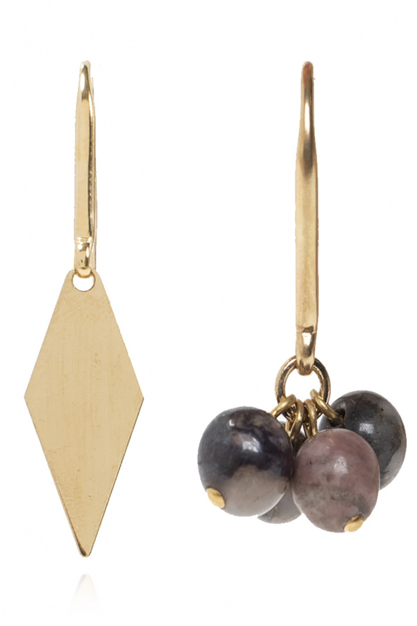 Gold-tone earrings from Isabel Marant. Made of brass, they feature a decorative pendant in brown and purple.