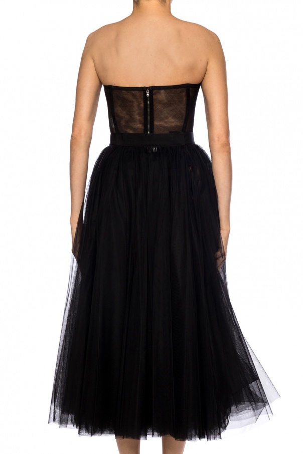 Black sheer corset with open shoulder straps from Dolce&Gabbana. Zip pocket at the back.
