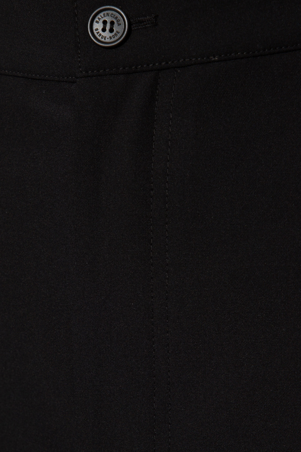 Black high-waisted trousers from Balenciaga. Made of wool, this pair is complete with zip and button fastening, three front pockets, two back pockets and wide, straight, cropped legs.