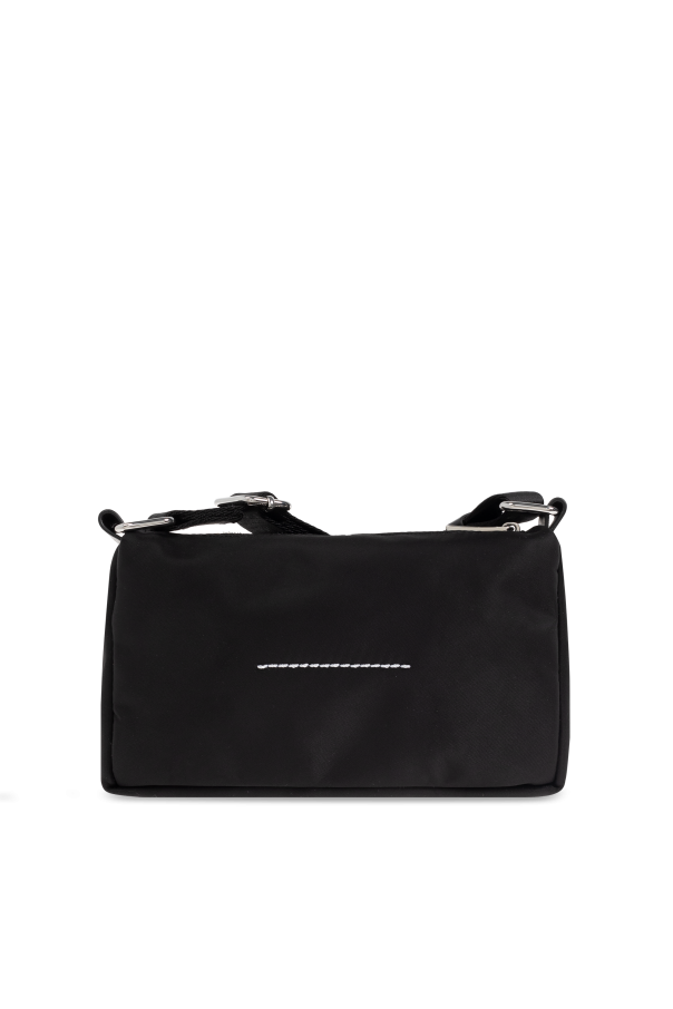 Introducing the Black Shoulder Bag from the exclusive MM6 Maison Margiela collection—an epitome of elegance and modern design. This rectangular-shaped, compact bag is crafted from sleek, high-quality materials, offering a perfect blend of style and functionality. The exterior features a distinctive rectangular patch with the designer\'s logo, complemented by silver zippers that add a touch of sophistication and practicality. The back of the bag is adorned with a subtle, signature stitch, enhancing its uniqueness. Equipped with a adjustable shoulder strap, this bag ensures personalized comfort. The interior is thoughtfully designed with a single compartment and a label with unique numbering, reflecting the brand\'s identity. Why Choose This Product? Aesthetic and practical design with a sleek, compact form High-quality materials with a luxurious feel Exclusive design details, including the logo patch and signature stitching Adjustable strap for personalized wear Part of the avant-garde MM6 Maison Margiela collection