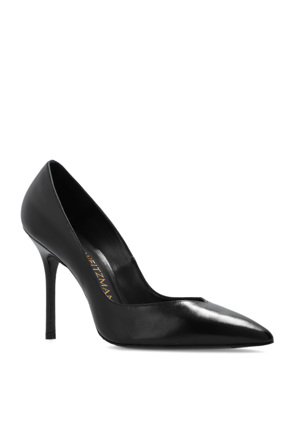 Black ‘Eva’ stiletto pumps from Stuart Weitzman. Made of leather with a pointed-toe silhouette, this model features a black leather sole with a rubber tip for better grip.