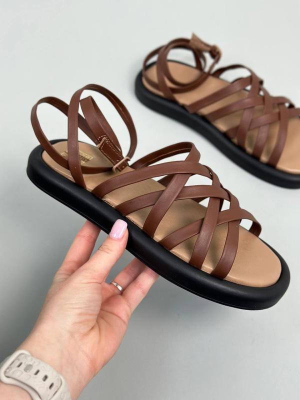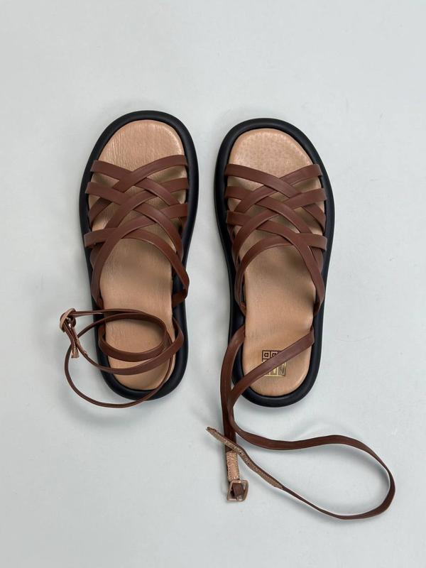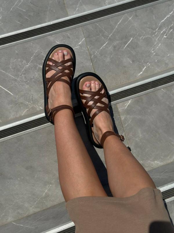 Жіночі босоніжки коричневого кольору з натуральної шкіри. Підошва поліуретан