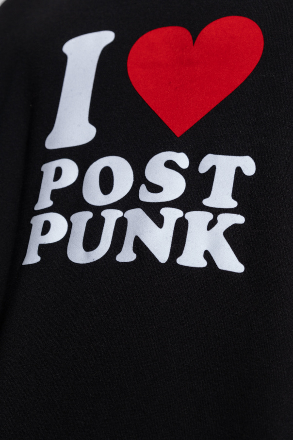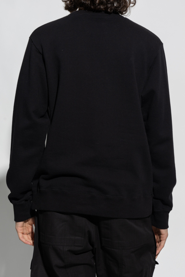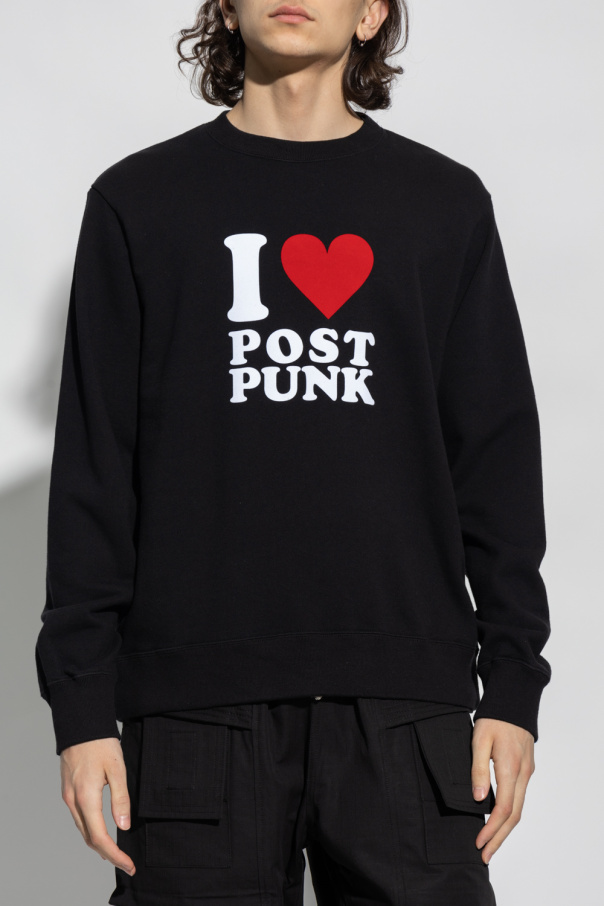 Black crewneck sweatshirt from Undercover. Made of cotton, this long sleeve design features a red and white print and ribbed trims at the neck, hem and cuffs.