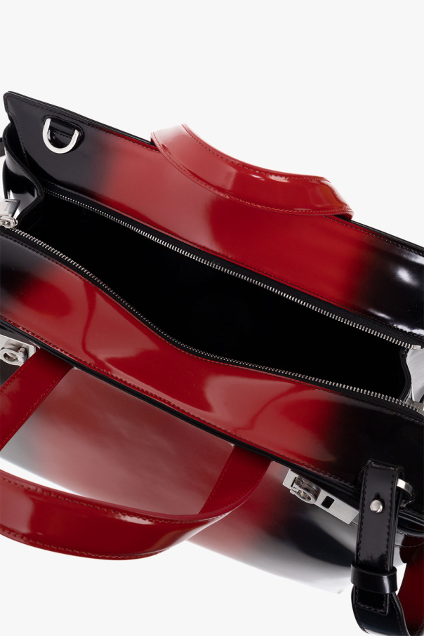 Red and black gradient shoulder bag from FERRAGAMO. Made of calf leather, this design features a zip fastening, adjustable straps with Gancini logo details on the sides, embossed logo on the front, back pocket with a magnetic closure, two half-round handles, adjustable shoulder strap and silver-tone metal hardware. It has one internal compartment with a magnetic snap pocket and zip pocket.