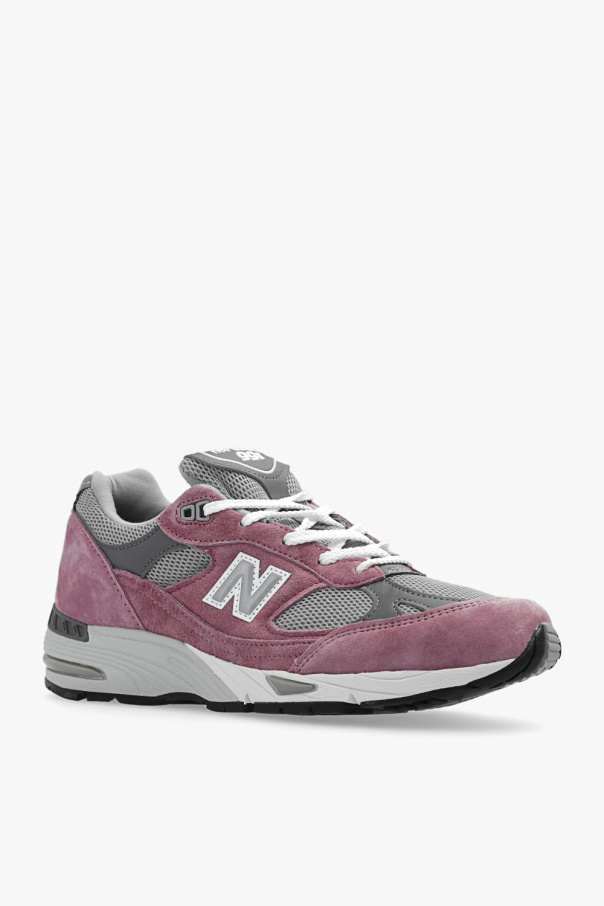 Purple and grey ‘W991PGG’ sneakers from New Balance. Made of suede trimmed with leather, this lace-up pair features reflective logo patches, a logo embroidery on the front and back as well as a rubber sole in black and grey.